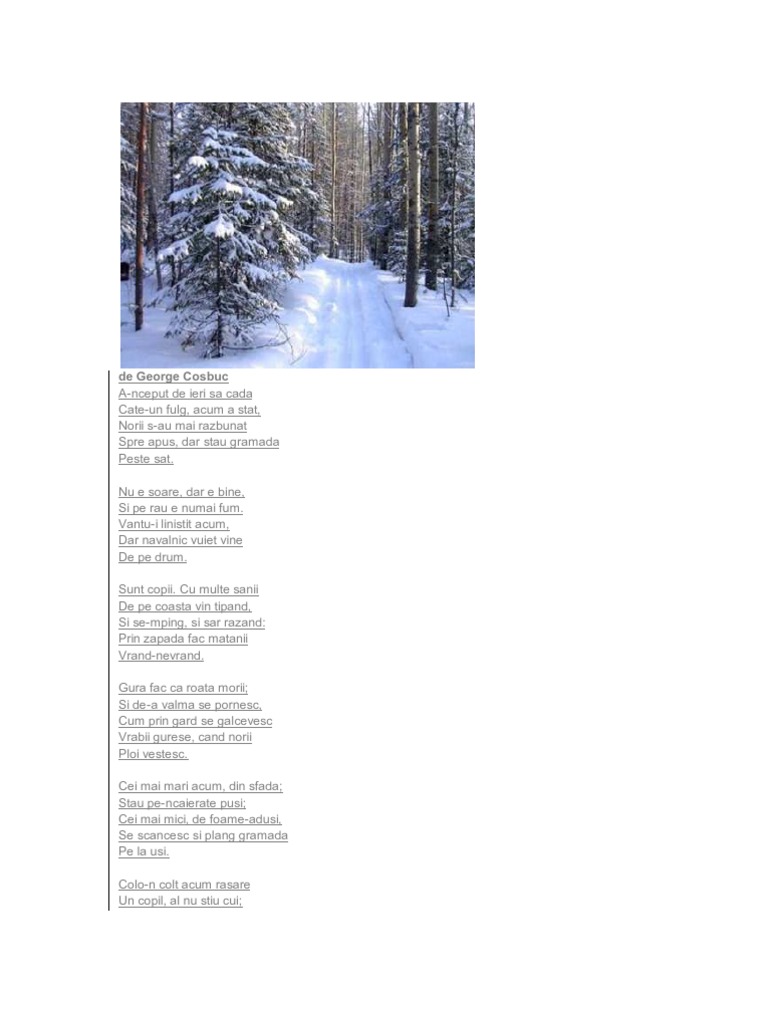 A nceput de ieri sa cada. Vântu i liniştit acum dar năvalnic vuiet vine de pe drum. Nu e soare dar e bine şi pe râu e numai fum. A nceput de ieri să cadă câte un fulg acum a stat norii s au mai răzbunat spre apus dar stau grămadă peste sat. De când mă știu am iubit natura.