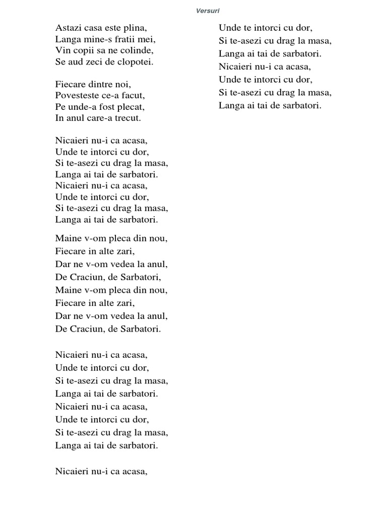 Zeitate a padurii si a crestelor marete capra neagra ne imbie sus pe piscuri indraznete r. De acasa cand am plecat eu pe tine te am rugat ca sa mi scrii draga mea o scrisoare dar tu carte stii si mie n ai vrut sa mi scrii si mai uitat draga mea iubire mare. Eram sigur ca e bine sa tin cont numai de tine pentru mine nu n a fost bine tot ce fac eu nu ti convine numai tu faci lucruri bune pentru tine doar pentru tine. Florin cercel versuri am plecat de acasa am plecat de acasa tare suparat dar mi am revenit pe drum cu gandul la baiat cum sa cad eu jos cum sa cad la pamant cum sa l vada el pe tatal lui plangand florin cercel am plecat de acasa lyrics.