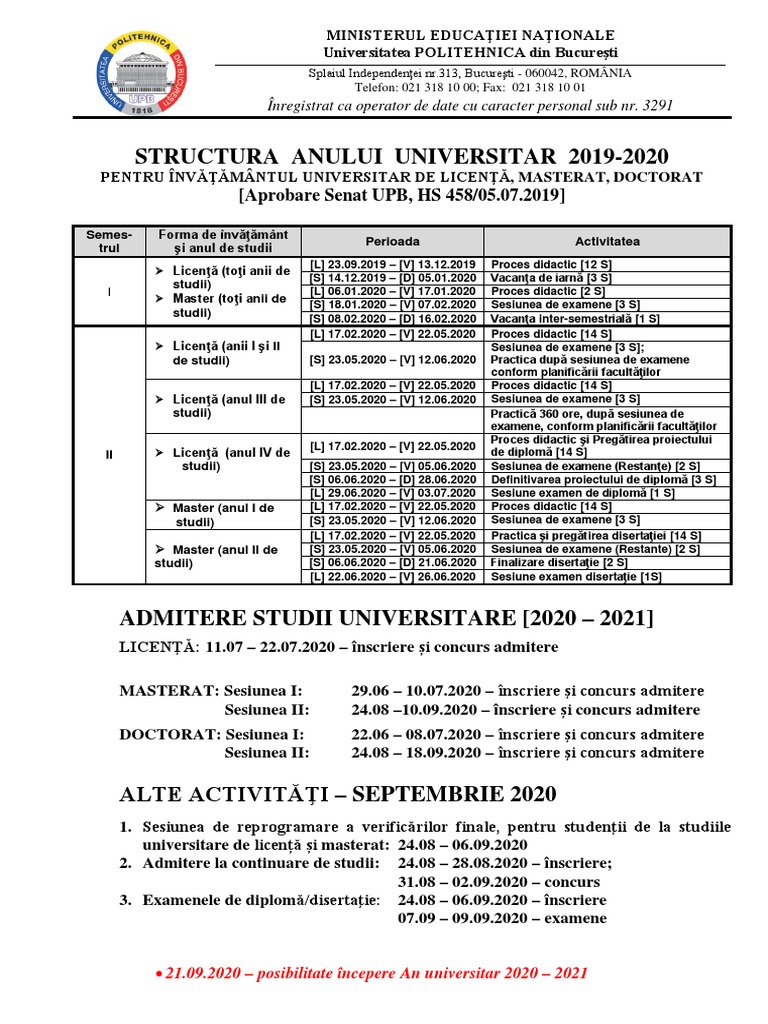 Upb 2019 2020 anul universitar 2019 2020 upb.