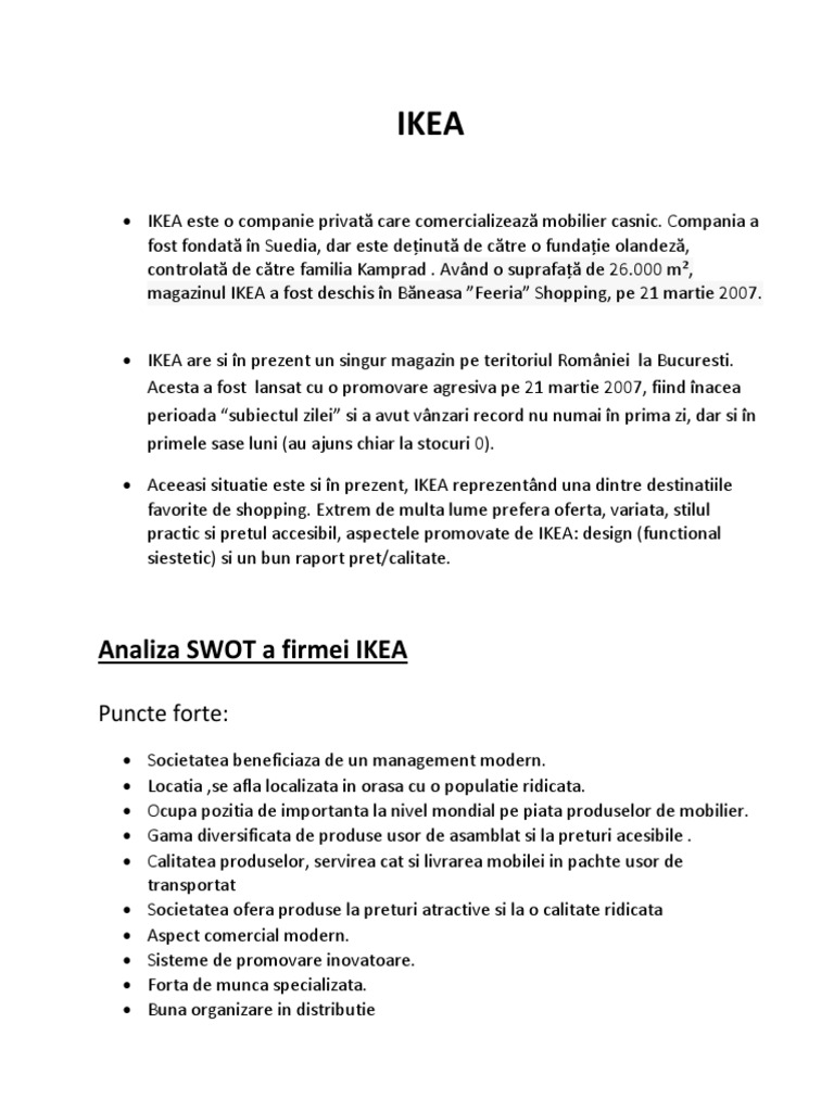 Analiza swot a unei firme de mobila. Analiza swot a unei firme de mobila analiza este analiza swot o analiza de piata folosita pe scara larga in procesele de management din toate domeni 43 tema management analiza swot a unei firme de mobila analiza swot 4 plan de recrutare si selectie cu definirea. Managementului strategic ii este specifica in esenta analiza continua pe de o parte a mediului extern al firmei pentru a anticipa sau sesiza la timp schimbarile din cadrul acestuia iar pe de alta parte a situatiei interne a firmei pentru a avalua capacitatea ei de a face fata cu succes schimbarilor. Analiza swot a companiei s c. Analiza swot este o metoda des folosita in mediul de afaceri pentru ca ajuta la proiectarea unei viziuni de ansamblu asupra firmei.