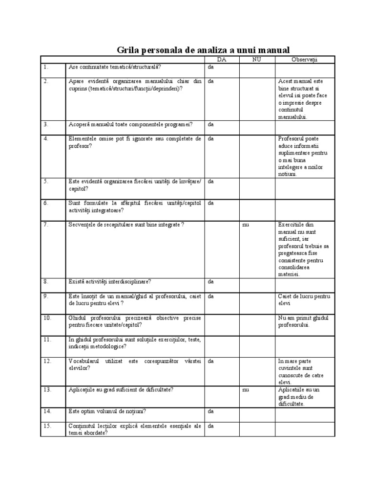 Mesaj pentru autor. Manualul propune o abordare interdisciplinara a continuturilor. 0 stele 0 review uri. Fişă de evaluare unui manual şcolar.