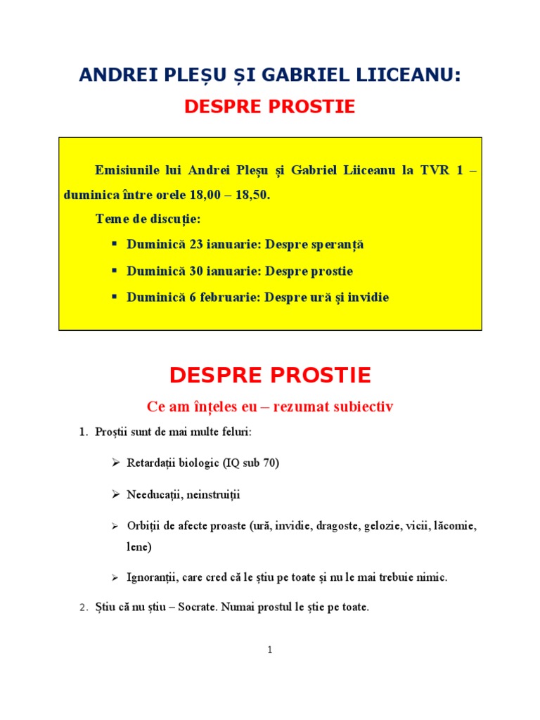 Enjoy the videos and music you love upload original content and share it all with friends family and the world on youtube. Există români proşti şi români. O mare fractură apare la orizont. Andrei plesu a vorbit despre originile cuvantului prost dar si despre prostie in general.