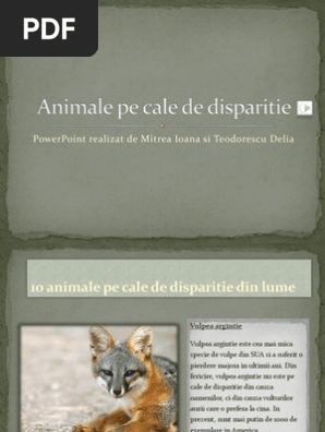 Avem peste 24320 prezentari powerpoint format pps pptx sau ppt ppsx primite de la 1075 de persoane. 393 in total 0 pe zi. 10 animale adorabile pe cale de dispariţie din cauza schimbărilor climaterice. Animale pe cale de dispariţie în românia.