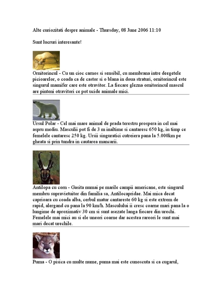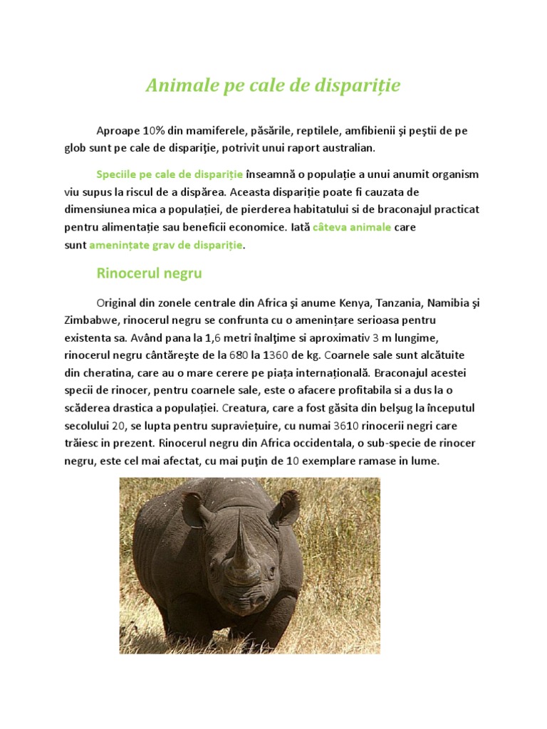 Iti recomandam sa te uiti bine pe extras si pe imaginile oferite iar daca este ceea ce ti trebuie pentru documentarea ta il poti descarca. Ai nevoie de doar 3 puncte. Odată ce ne am luat rămas bun de la lonesome george ultimul reprezentant al unei subspecii a ţestoasei de galapagos în 2012 face să ne amintim de alte specii din ultimele decenii declarate animale dispărute. Acest referat descrie animale pe cale de disparitie.