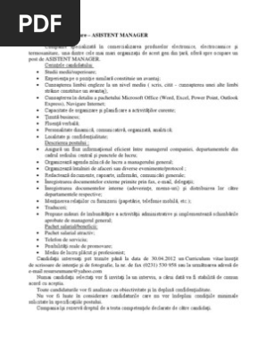 Pe olx ro te asteapta locuri de munca apartamente si camere de inchiriat masini second hand si telefoane mobile la preturi mici. Anunturi de angajare video premium business sau standard. Pentru editarea fișierului este necesar să aveți instalat în calculator laptop microsoft office word recomandăm versiunea 2007. Model anun de angajare asistent manager companie specializat n comercializarea produselor electronice electrocasnice i termosanitare una dintre cele.