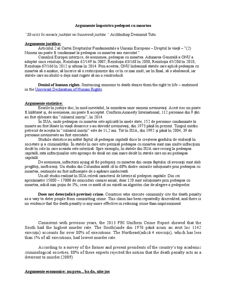 Pedeapsa capitală pedeapsa cu moartea argumente pro şi contra câteva consideraţii introductive. Argumente pro contra reintroducerii pedepsei cu moartea. Acest document prevede c ă abolirea pedepsei cu moartea.