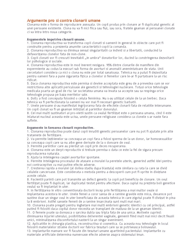 In acest tab puteti sa adaugati opinii contra vaccinare sau sa combateti cu argumente pro si contra opiniile contra vaccinare existente o scurta istorie a vaccinarii chinezii au folosit tehnici de inoculare împotriva variolei încă din 1000 ad iar tehnici similare au fost de asemenea folosite în africa și turcia antica. Argumente pro si contra clonarii umane clonarea este o forma de reproducere asexuala.