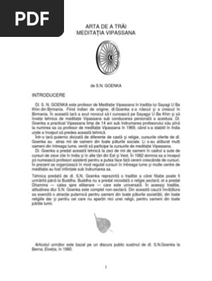 Arta De A Trai Meditatia Vipassana Pdf