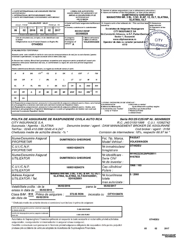 Pint ro broker de asigurare srl este inregistrata ca operator de date cu caracter personal la anspdcp sub nr. Accidentul pe 13 07 2020 iar suma propusa pe 15 07 2020. Cea obligatorie de răspundere civilă şi casco. Consultanta pentru asiguratii city insurance.
