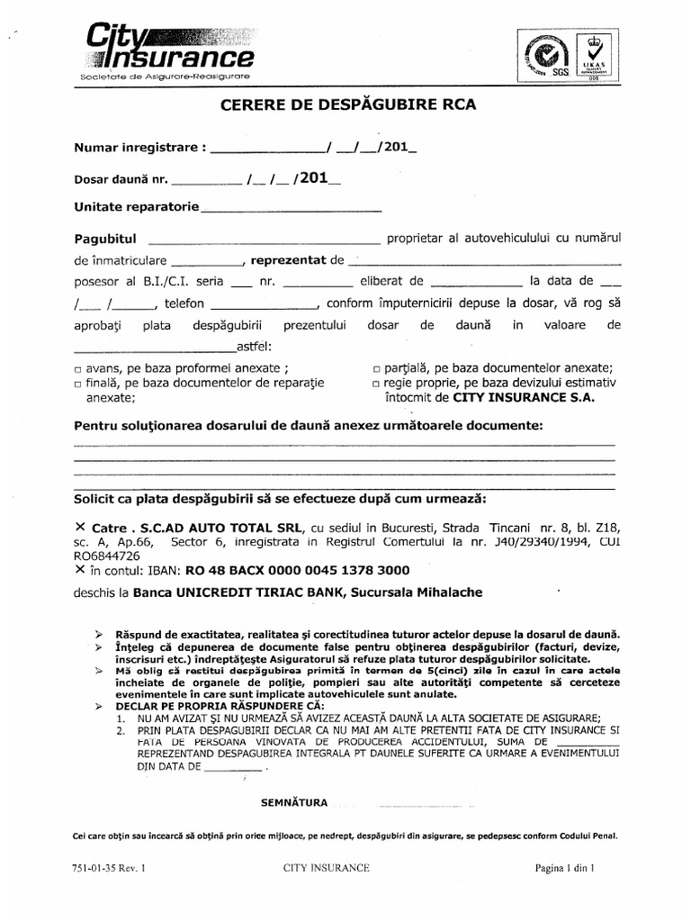 Despre asigurarea rca o clipă de neatenție sau oboseală te pot aduce în situația unui accident de care ești răspunzător moment în care ai nevoie de o poliță de asigurare rca. Chiar daca un conducator auto a incheiat o asigurare casco acesta este obligat conform legii sa incheie si o asigurare de raspundere civila auto rca. Societatea de asigurare reasigurare city insurance s a. Compania city insurance a fost înfiinţată în anul 1998 la iniţiativa unui grup de investitori români şi a început să activeze din anul 2001.