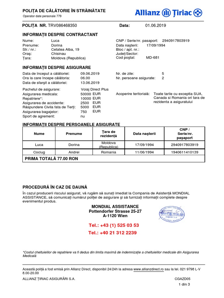 Consultatii medicale de specialitate investigatii imagistice teste si analize de laborator interventii chirurgicale. Allianz tiriac asigurari sa este inregistrata ca operator de date cu caracter personal nr. Am luat la cunostinta ca allianz tiriac asigurari este inregistrata ca operator de date cu caracter personal nr. Beneficiezi de sprijin competent in luarea deciziei medicale corecte.