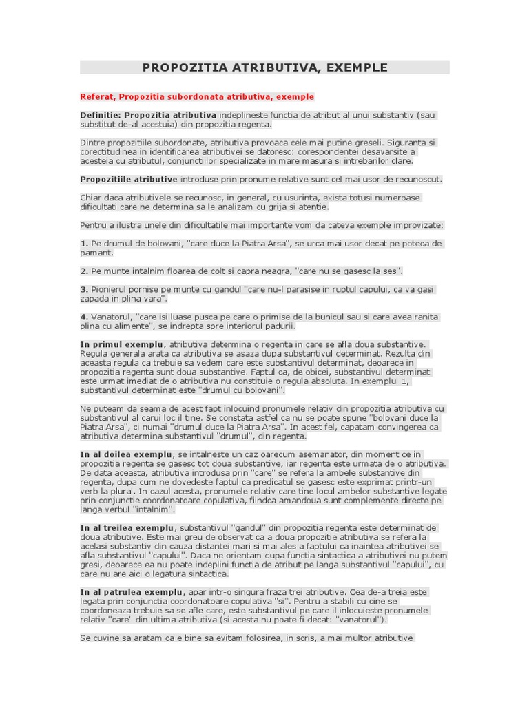 Ca sa daca ce ca sa unde cand oricui cat. Atributiva când în regentă există un predicat nominal format din verb copulativ și nume predicativ exprimat prin substantiv în nominativ subiectiva poate fi confundată cu o atributivă. Substantivul tablourile este regent pentru propozitia 2 care este atributiva. în ipoteza unei acţiuni pe cale legală tpu ro este obligat să furnizeze ip ul tău 157 55 39 164 şi restul datelor de.