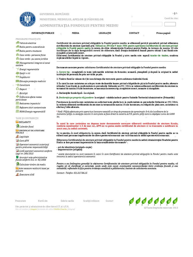 Autorizatii de mediu obligatii afm si apm contributii si taxe datorate gestionarea ambalajelor declaratii afm etc. Aplicația permite contribuabililor persoane fizice sau juridice în orice moment al zilei fără a mai fi necesară deplasarea la sediul administrației fondului pentru mediu să acceseze următoarele funcţionalităţi ale serviciului depunere declaraţii on line. începând cu această dată toți cei peste 100 000 de utilizatori ai sumal 2 0 dintre care peste jumătate sunt noi vor începe să opereze în acest sistem informatic. Anpm a fost înființată în anul 2004 într o perioadă de reforme instituționale majore în domeniul protecției.