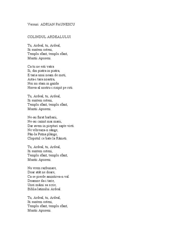 Versuri avem o tara de radu gyr. Avem ierarhii sfinți pe iancu și martirii pe horea tras pe roată pentru neam. Prin cele ce se văd. Avem o tara unde au stapanit odata vitejii daci barbati nemuritori.
