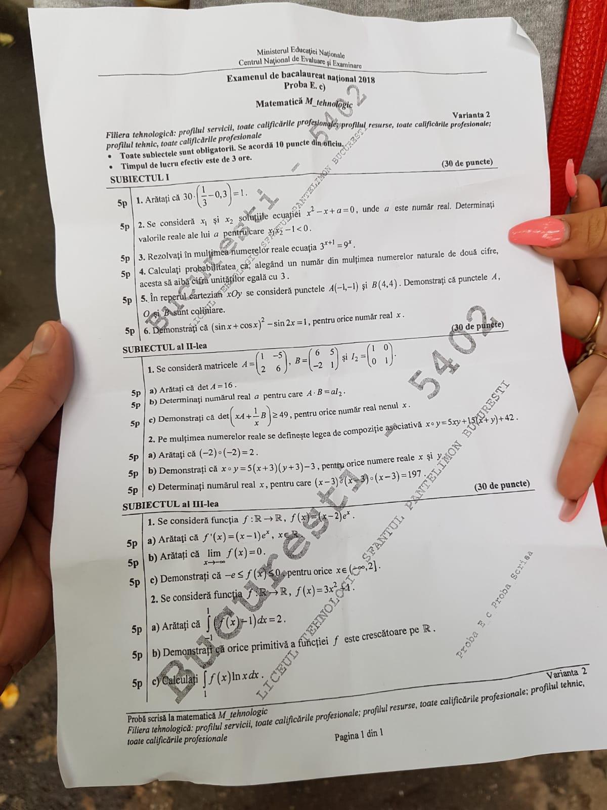 Subiecte matematica bac 2018 m3 tehnologic. Subiecte matematică tehnologic bac 2018. Există mai multe variante de subiecte la matematică la bacalaureat 2018 m1 m2 m3 în funcţie de specializare mate info ştiinţe ale naturii tehnologic. Programa m mate info pentru filiera teoretica profilul real specializarea matematica informatica si pentru filiera vocationala profilul militar specializarea matematica informatica.