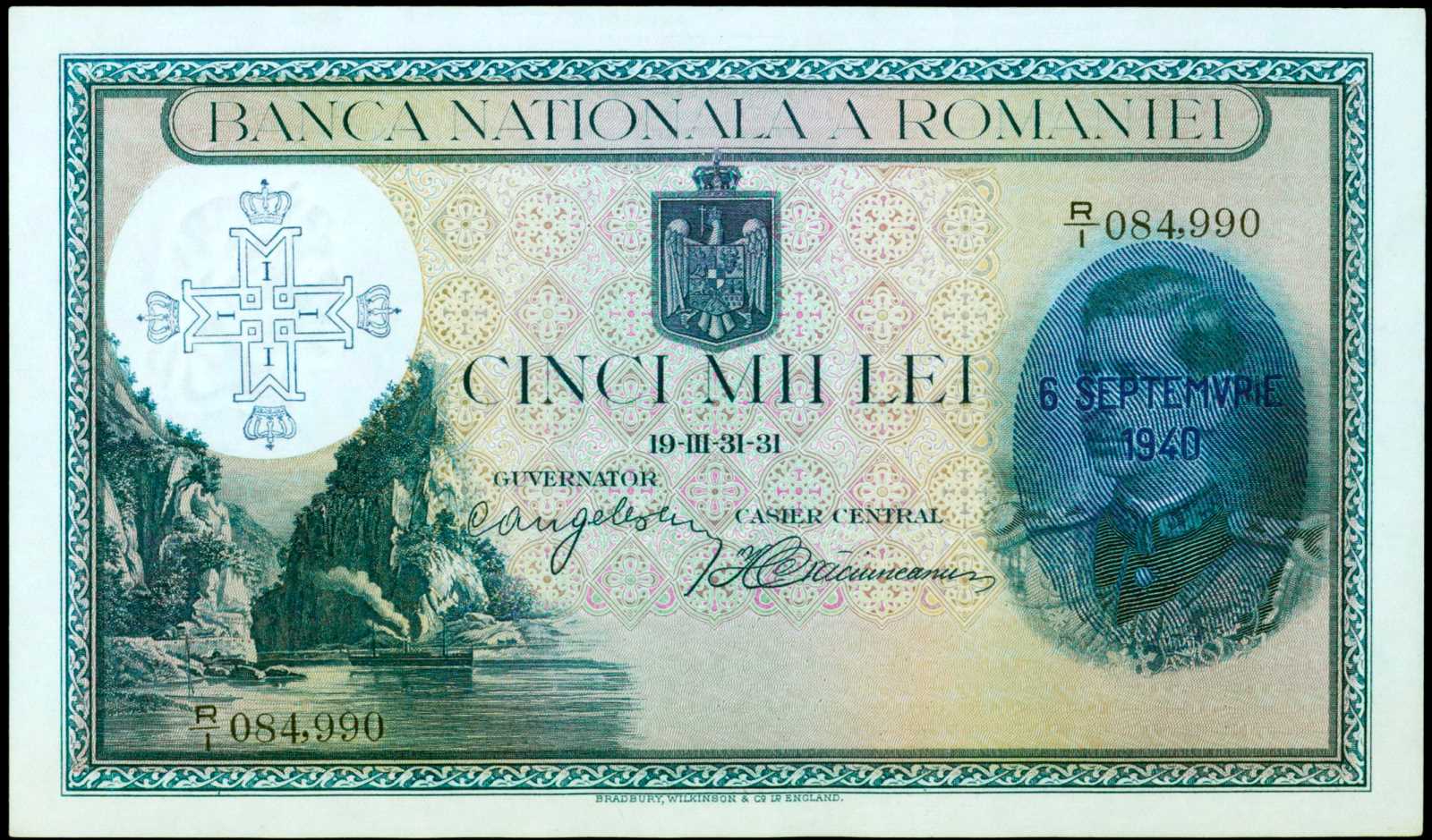 1940 romania cinci mii lei pmg 66 gem uncirculated.