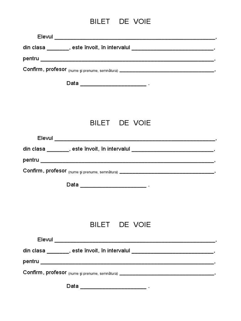 Bilet de voie model word. Am nevoie de asa ceva. Satu mare loc. Am inteles ca exista doua modele. Unul pentru bilet de voie in interes personal si cel pentru bilet de voie in interes de serviciu.
