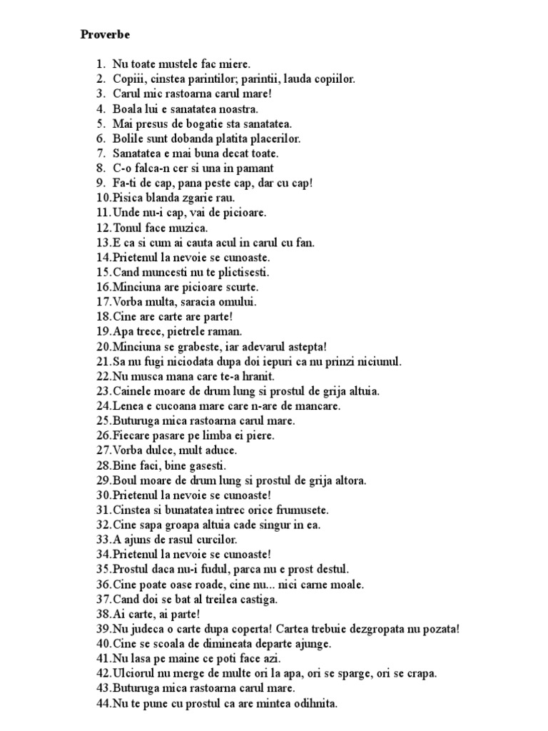 When the cat isn t at home the mice dance on the table. Păstrează bine ca să găseşti bine. Bine faci bine găsești. Când pisica nu i acasă joacă şoarecii pe masă.